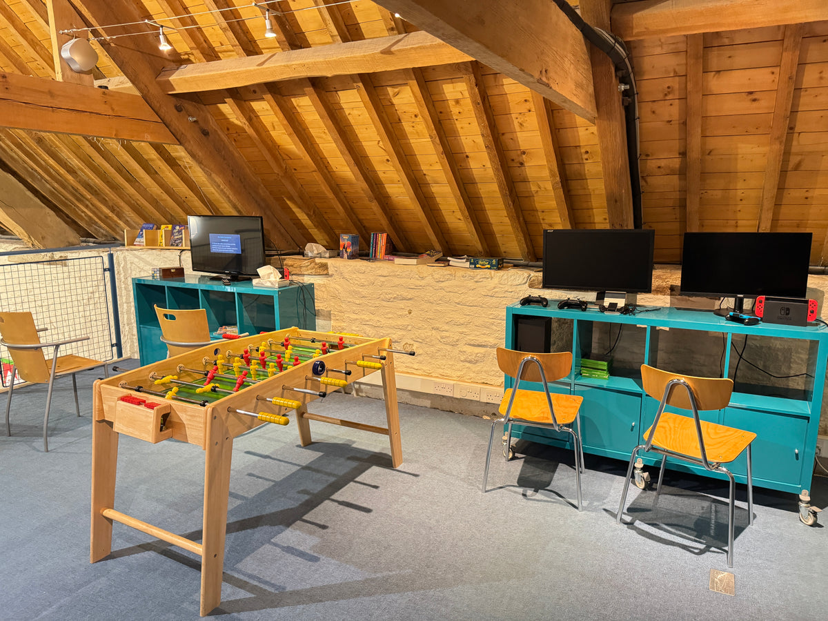For kids, Calcot truly shines. Each day includes four hours of complimentary childcare at The Playbarn, a huge indoor space filled with toys, crafts, games, and a dedicated teen lounge with video games and foosball. Outside, there’s a giant teepee in the wildflower meadow stocked with toys, an outdoor playground, mud kitchen, enclosed toddler area, and bikes to borrow. The thoughtful details continue in the rooms, with Usborne books, bath toys, tiny robes, gingerbread cookies on the beds, and even a Toniebox with a choice of characters, plus a VCR and stack of classic kids’ DVDs for a nostalgic touch. A daily Kids Tea at 5pm includes a generous snack buffet and made-to-order favourites like pizza and burgers, giving kids their own moment and routine each evening.