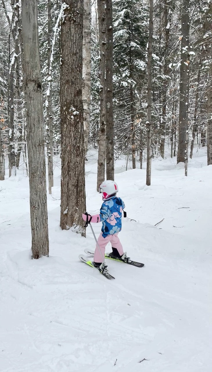 We rented all of our gear onsite, except our helmets and goggles which we brought from home, and booked 2 hours of ski lessons for the kids. The instructors were fantastic! They did a great job of handling both kids at the same time, keeping it fun, and taking them through secret forested trails and fun runs. Meanwhile, Tourisme Laurentians also arranged for a ski instructor to give us parents a guided tour of the mountain for the hour. I didn’t learn to ski until I was 25 years old after my husband and I started dating, so it was actually so nice to get some tips on how to improve my skiing!